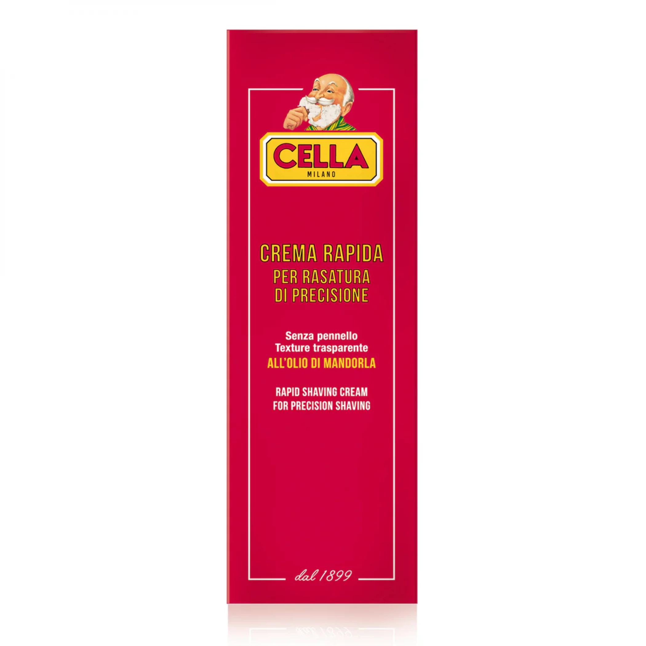 Cella fast cream is applied without using a brush and its transparent texture, enriched with almond oil, ensures an accurate, rapid shave.