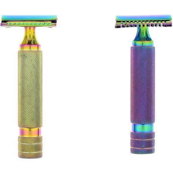 West Coast Shaving continues to innovate with the launch of their Titanium Collection, introducing a range of safety razors designed to captivate with both their aesthetics and performance. Among these standout offerings is the WCS Multi Titanium Collection Razor, 175M, featuring a high-quality stainless steel construction with a striking multi-colored anodized finish. This anodizing process ensures a durable and virtually indestructible surface that resists scratching, nicking, staining, or fading, maintaining its metallic iridescent gleam for a lifetime. The Titanium Collection epitomizes endurance and elegance, elevating the grooming experience with its impeccable craftsmanship and eye-catching design. Available with a choice of open or closed comb heads (available only in chrome), this razor promises both style and substance, delivering a shave that is both efficient and comfortable.