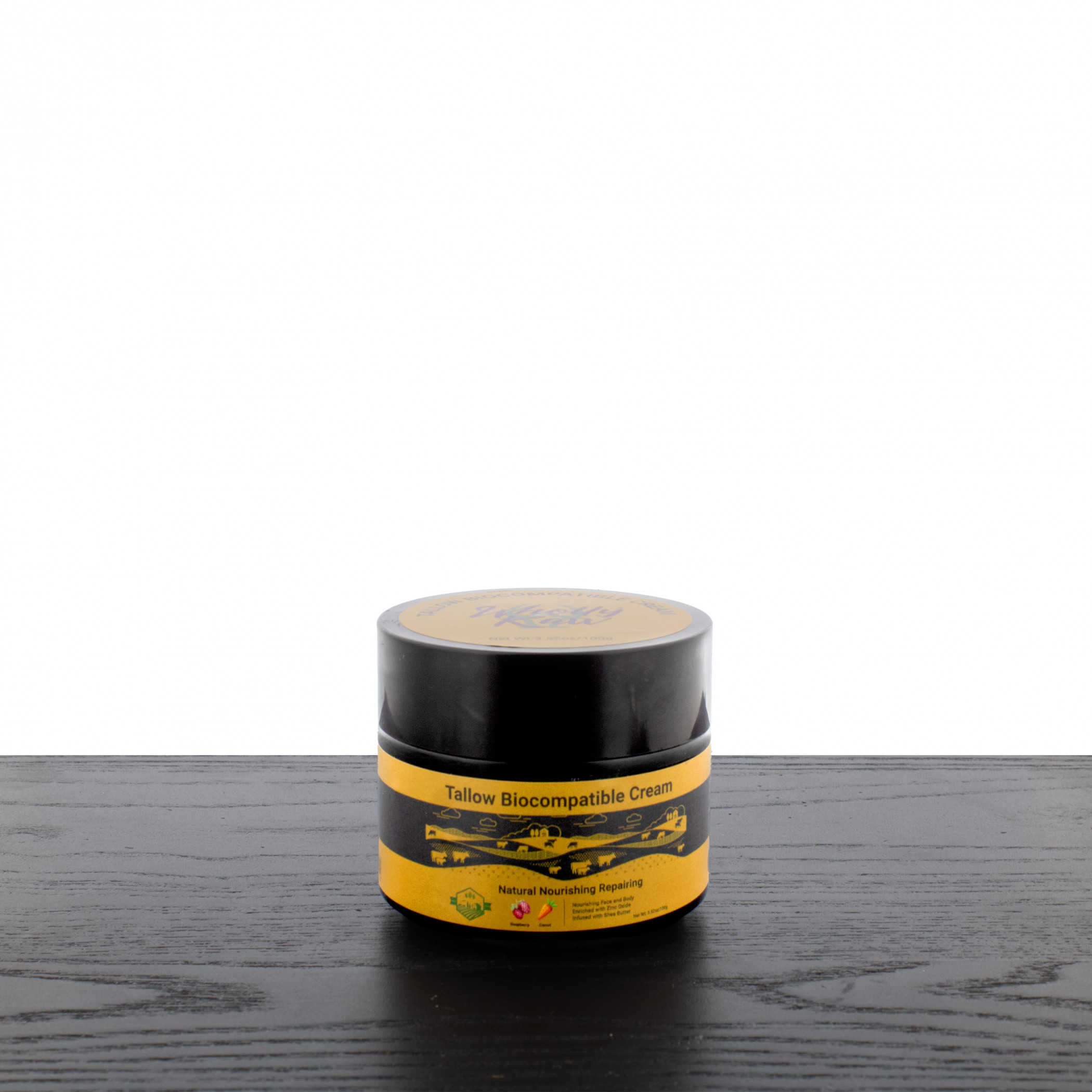 INGREDIENTS: Grass Fed Tallow, Zinc Oxide, Rubus Idaeus Seed Oil (Red Raspberry), Daucus Carota Sativa Seed Oil (Carrot), Beeswax, Butyrospermum Parkii Butter (Shea Butter)