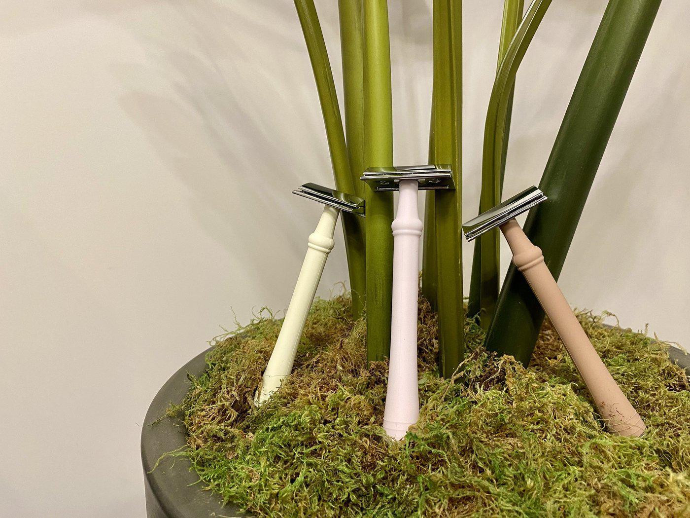 This razor features a slanted head geometry, ensuring a closer, smoother shave with less skin irritation and razor burn. Not only does it provide a superior shaving experience, but it also contributes to reducing environmental waste and offers a more cost-effective alternative to disposable razors. The ergonomic silicon-wrapped long handle offers a comfortable grip, even in wet environments like the shower or bath, and is available in multiple color options including classic ivory, sweet blush pink, and luscious mocha, allowing you to choose the perfect match for your decor or personal style. Paired with our Lithe razor head, designed in collaboration with Charcoal Goods, this razor ensures an excellent and easy shave. The mild head design is forgiving, making it ideal for new shavers or navigating tricky areas like knees, underarms, and the bikini area, while the cap helps achieve the perfect angle for a smooth finish.